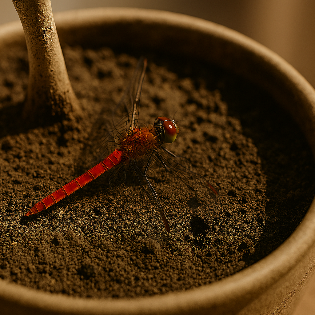 この間の朝、ベランダにあるガジュマロの鉢植えの土の上に、赤とんぼがいるのを妻が発見しました。羽を一生懸命動かしていましたが、飛べない様子でした。少しでも飛びやすいようにと枝の上に置いてあげたということですが、後で見るとまた土の上に落ちていました。